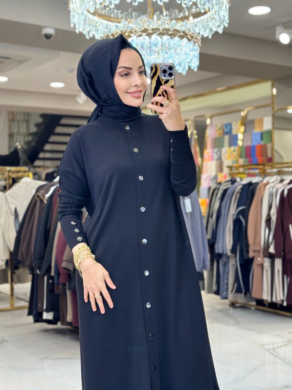 048 Eteği Volanlı Çıtçıtlı Uzun Hırka Siyah