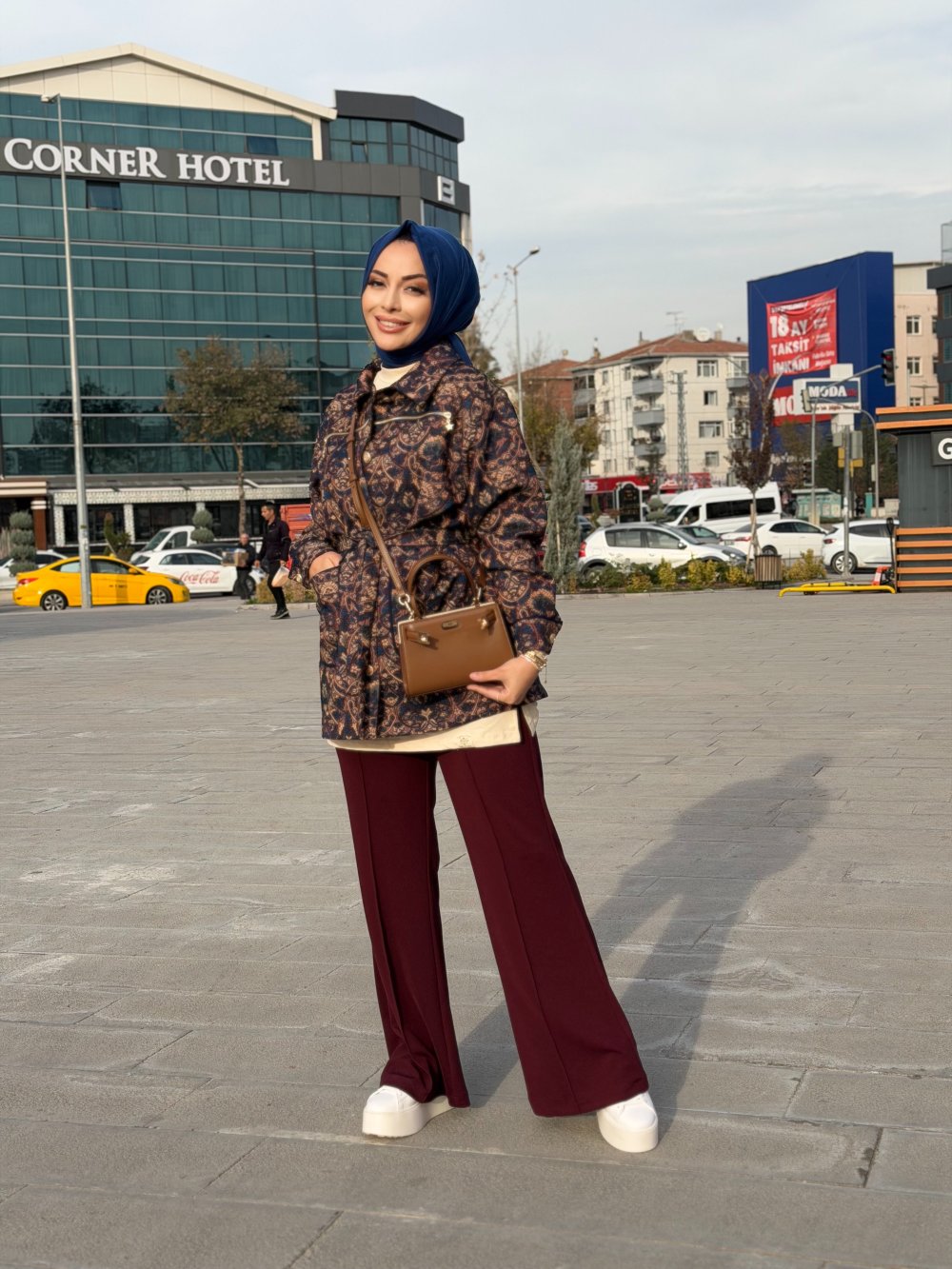 10835 Kendinden Çiçek Desenli Ceket Bordo