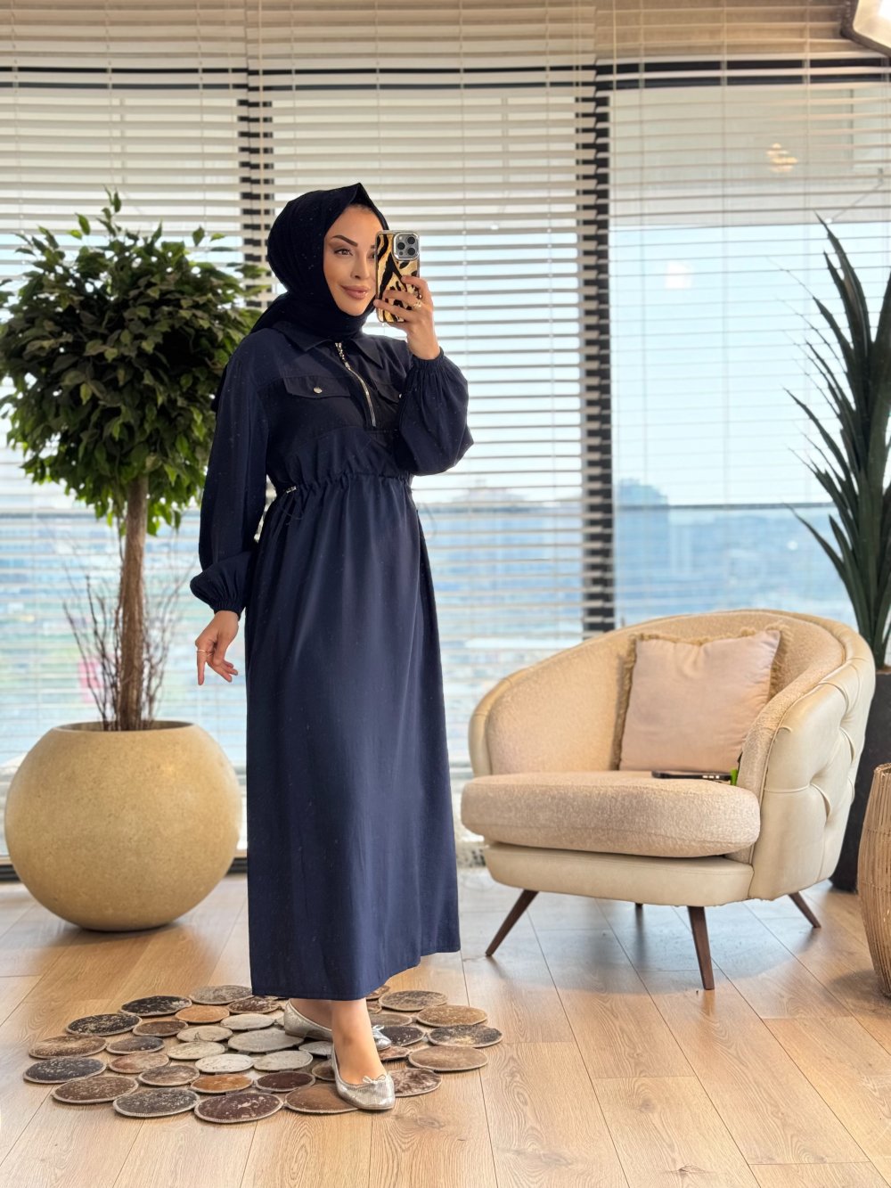 12670 Roba İki Cepli Patı Fermuarlı Elbise Lacivert