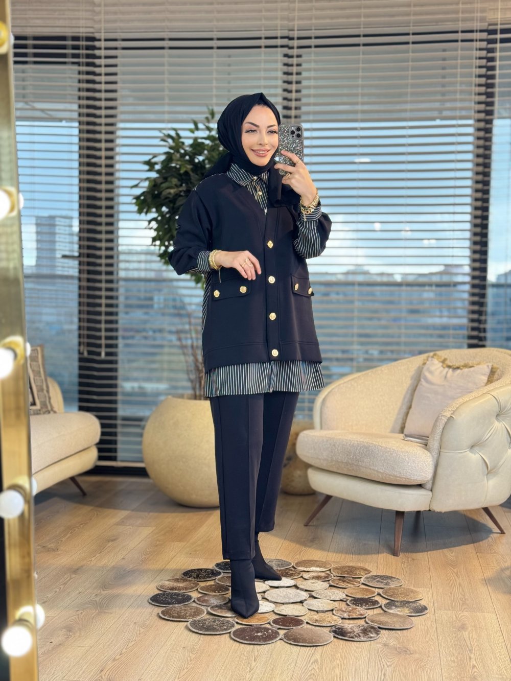 1405 Gömlek Üstü Yelek Detaylı Takım Siyah