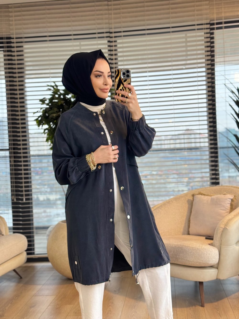 15259 Önü Parça Ve Çıtçıtlı Kap Siyah