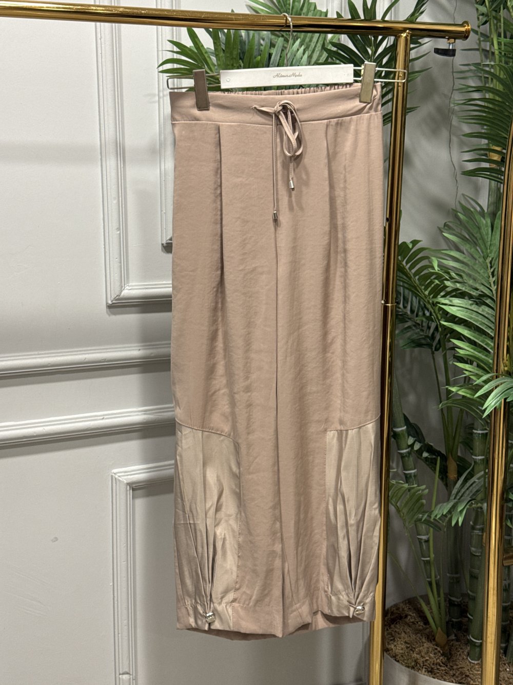 18287 Paçası Parça Ve Lastik Geçmeli Pantolon Koyu Bej