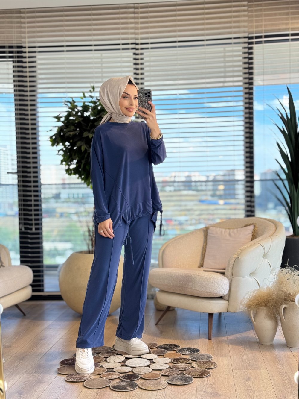 22758 Etek Ucu İp Detaylı Takım Lacivert