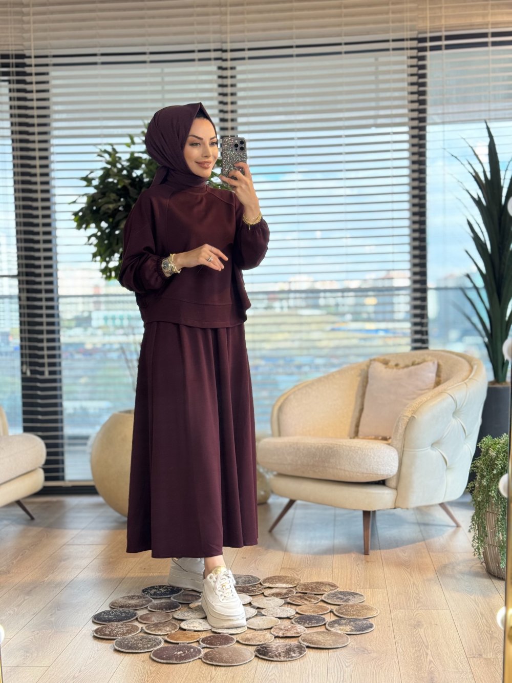 22779 Etek Ucu Parçalı Yarasa Kol Takım Bordo