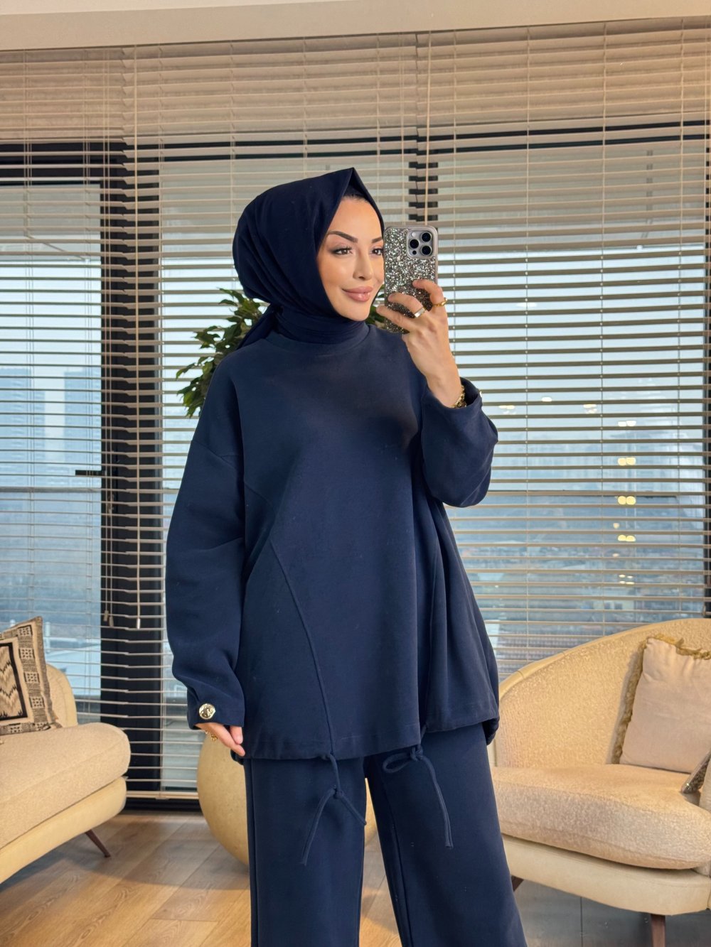 22805 Kadife Etek Ucu İpli Takım Lacivert