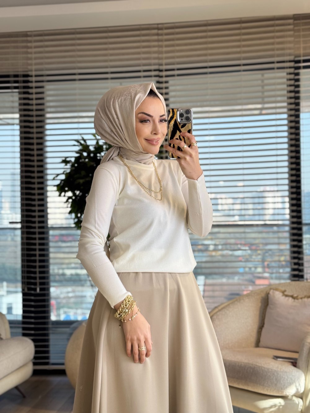 2455 Kolları Zımba Detaylı Triko Kazak Ekru