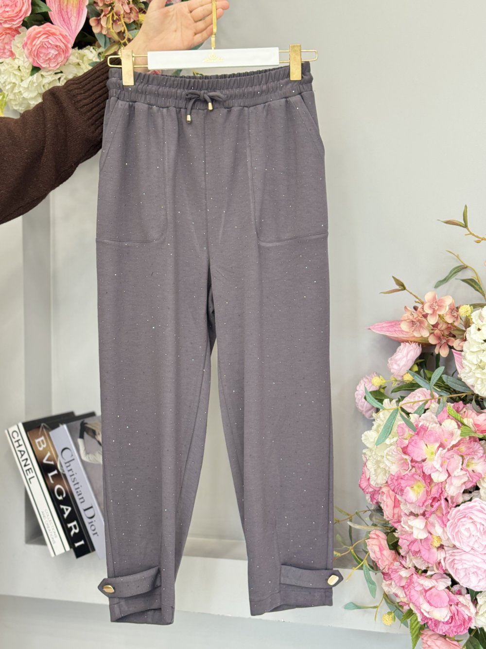 25535 Üstü Taş Baskılı Paça Düğmeli Pantolon Antrasit