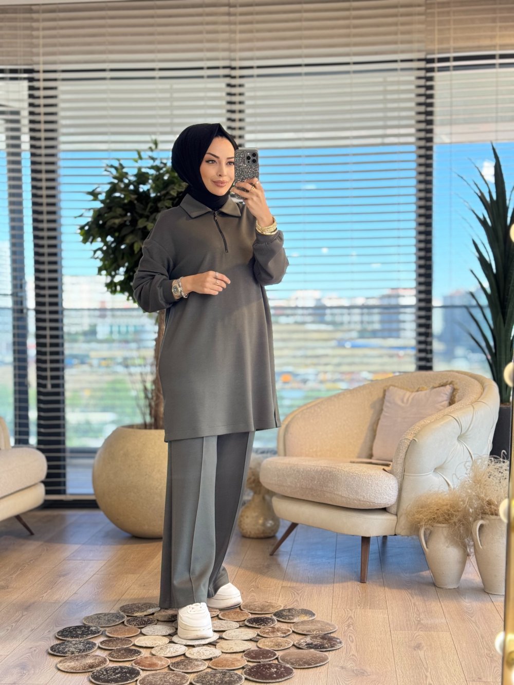 2564 Patı Fermuarlı Polo Yaka Takım Haki