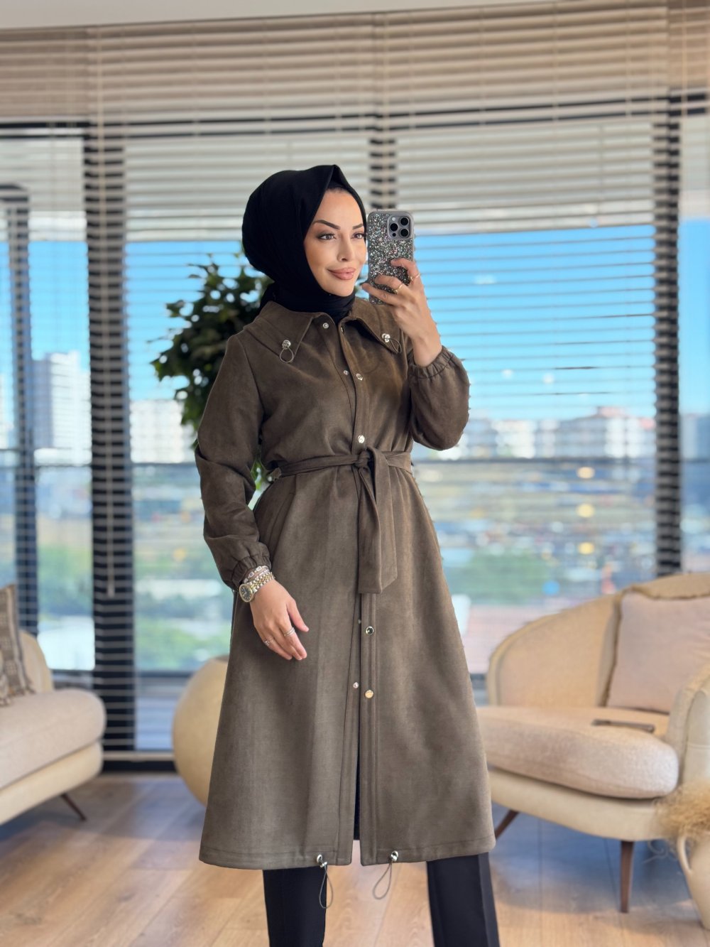 2569 Yakası Lastikli Süet Pardesü Siyah