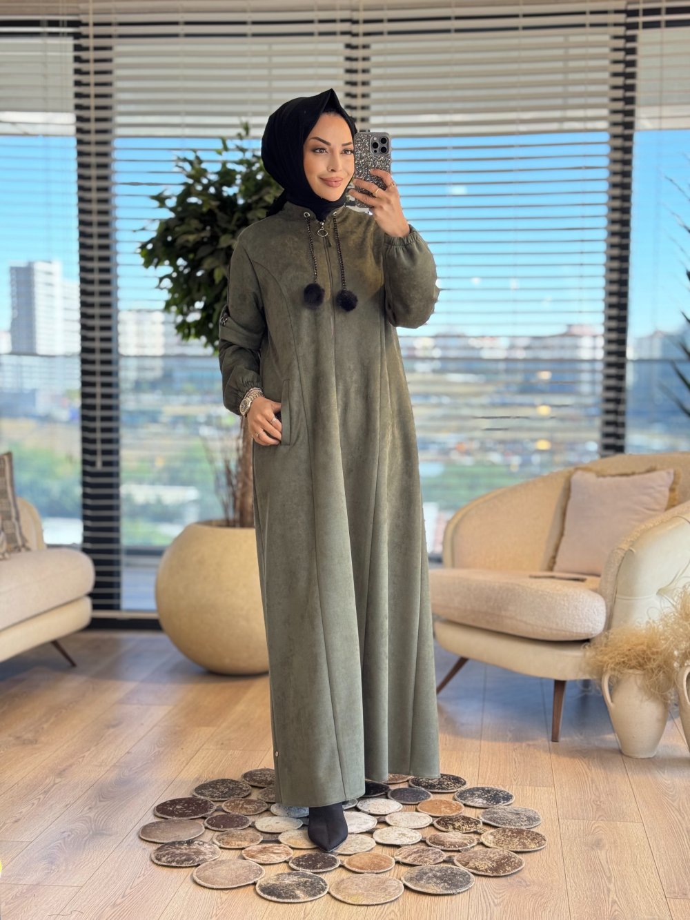 2571 Kolu Şeritli Süet Pardesü Siyah