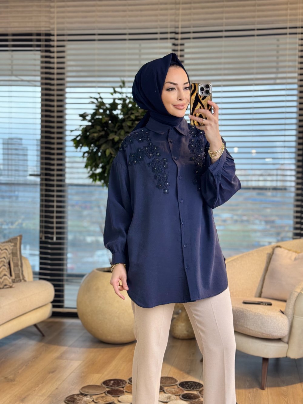 260141 Şık Aplikeli Gömlek Lacivert