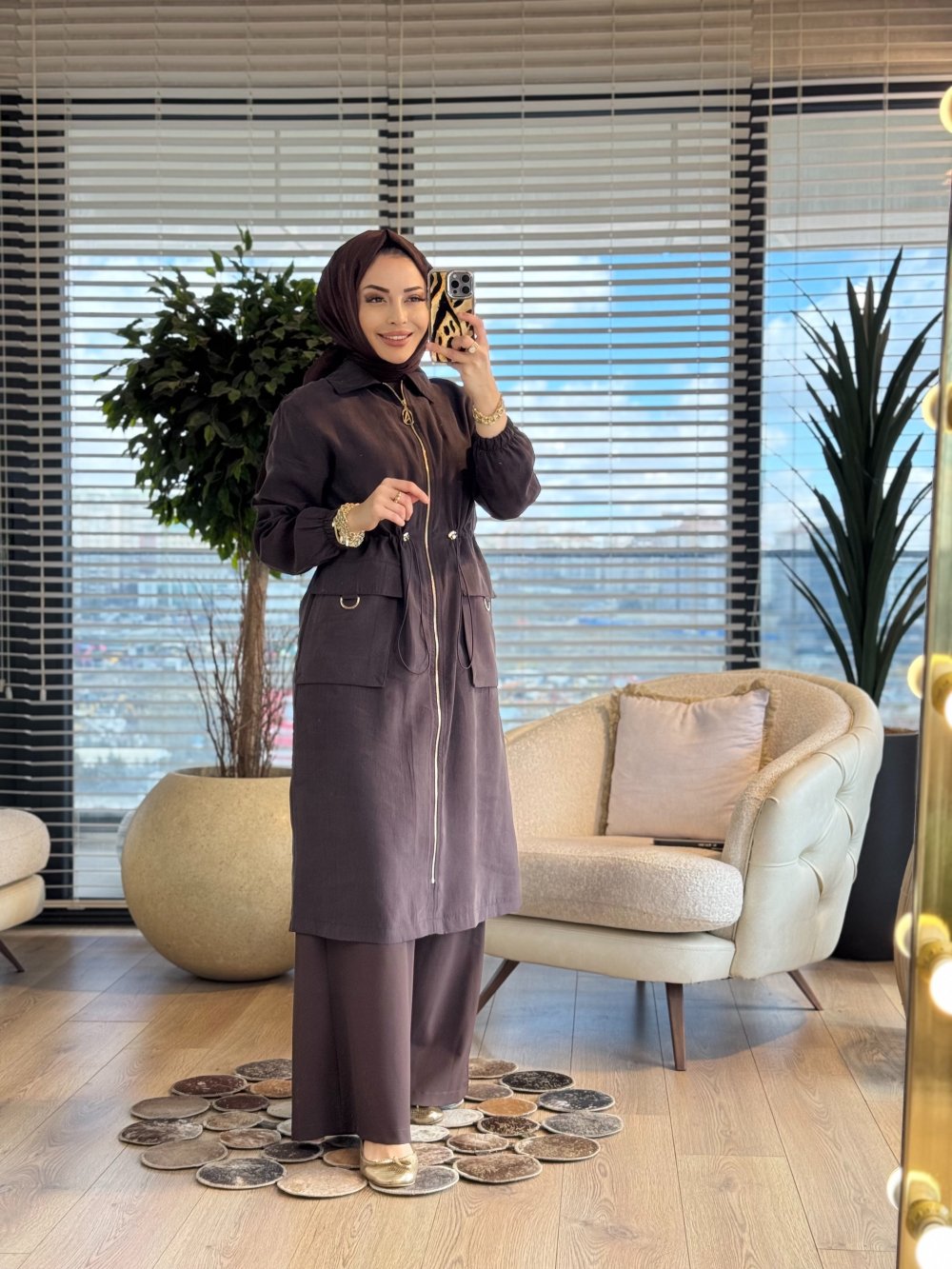 26YT501 Beli Büzgülü Fermuarlı Kap Kahve