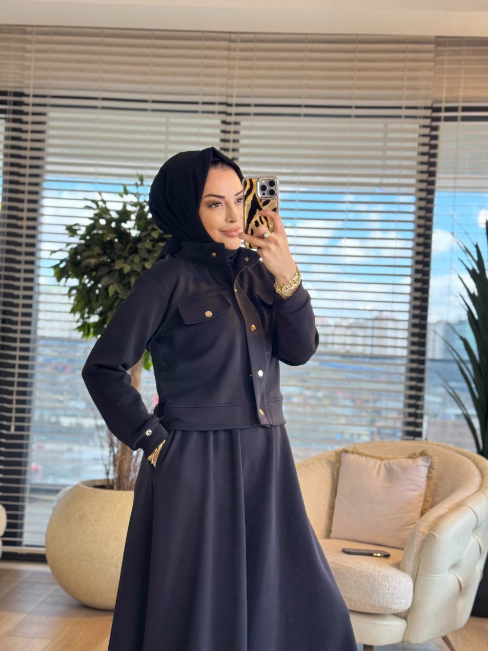 26YT604 Önü Gold Çıtçıtlı Etekli Takım Siyah