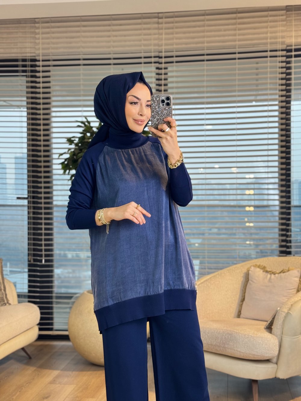 286 Düz Kupra Yandan Fermuarlı Tunik Lacivert