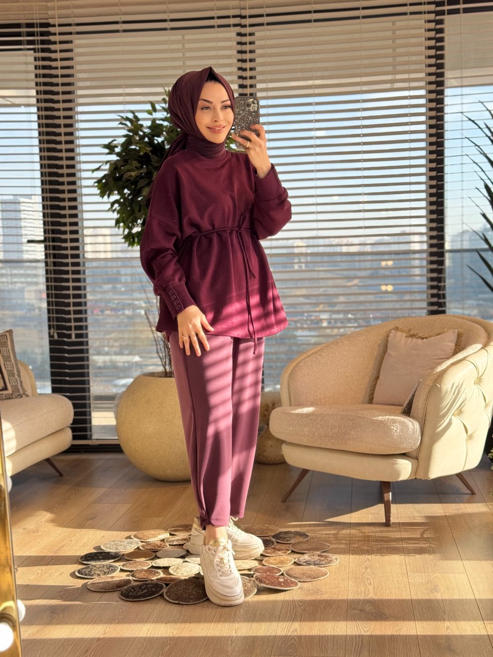 3117 Manşeti Düğme Detaylı Sweatshirt Bordo