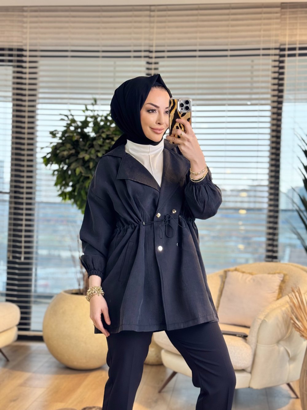 3225 Beli Bağcıklı Dört Düğmeli Ceket Siyah
