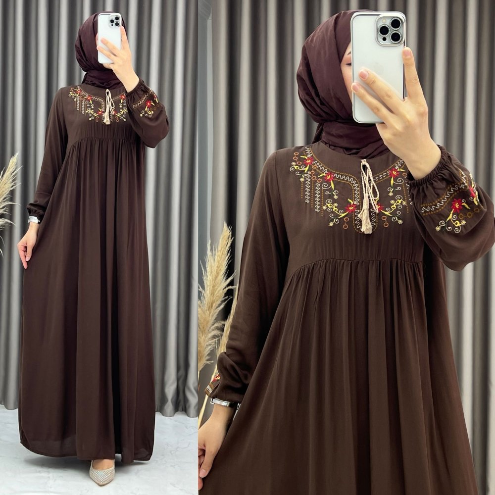3460 Meliha Elbise Kahverengi