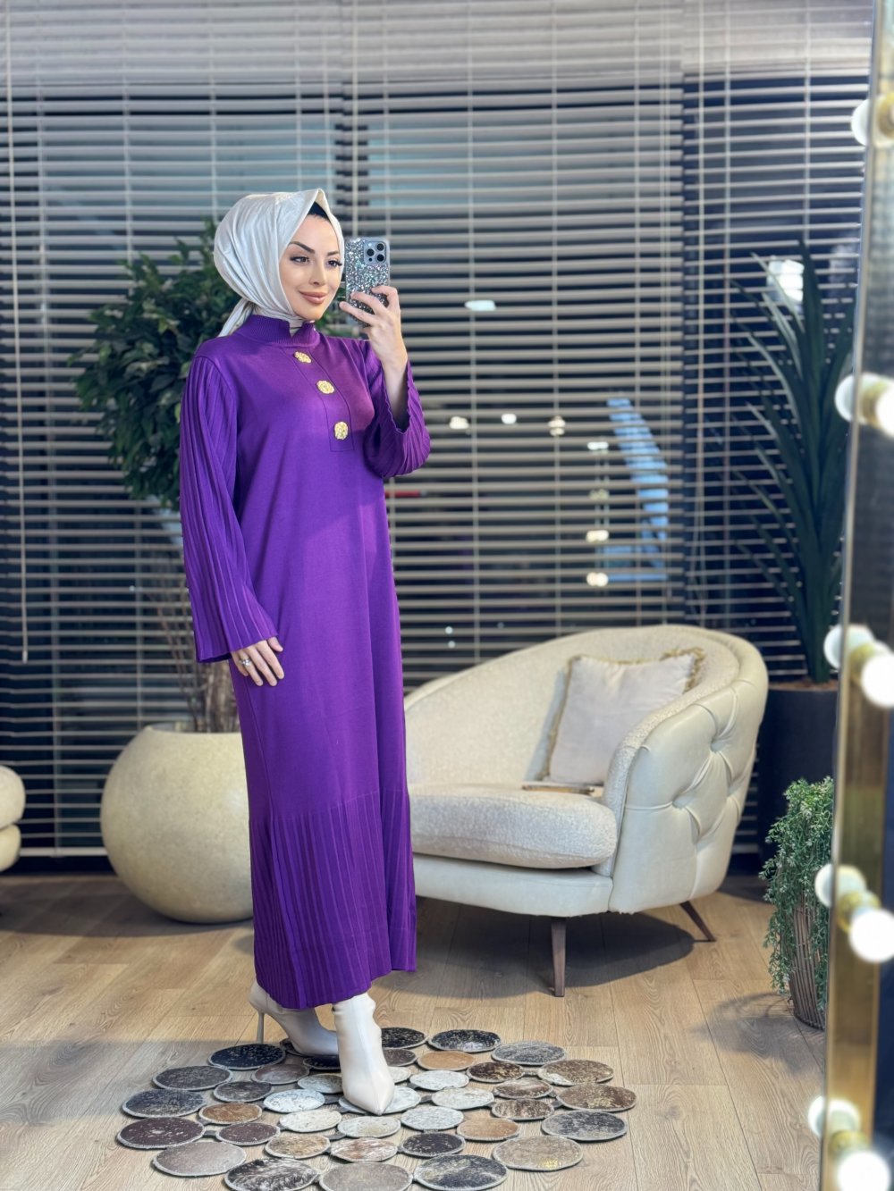 3507 Metal 3 Broşlu Triko Elbise Leylak