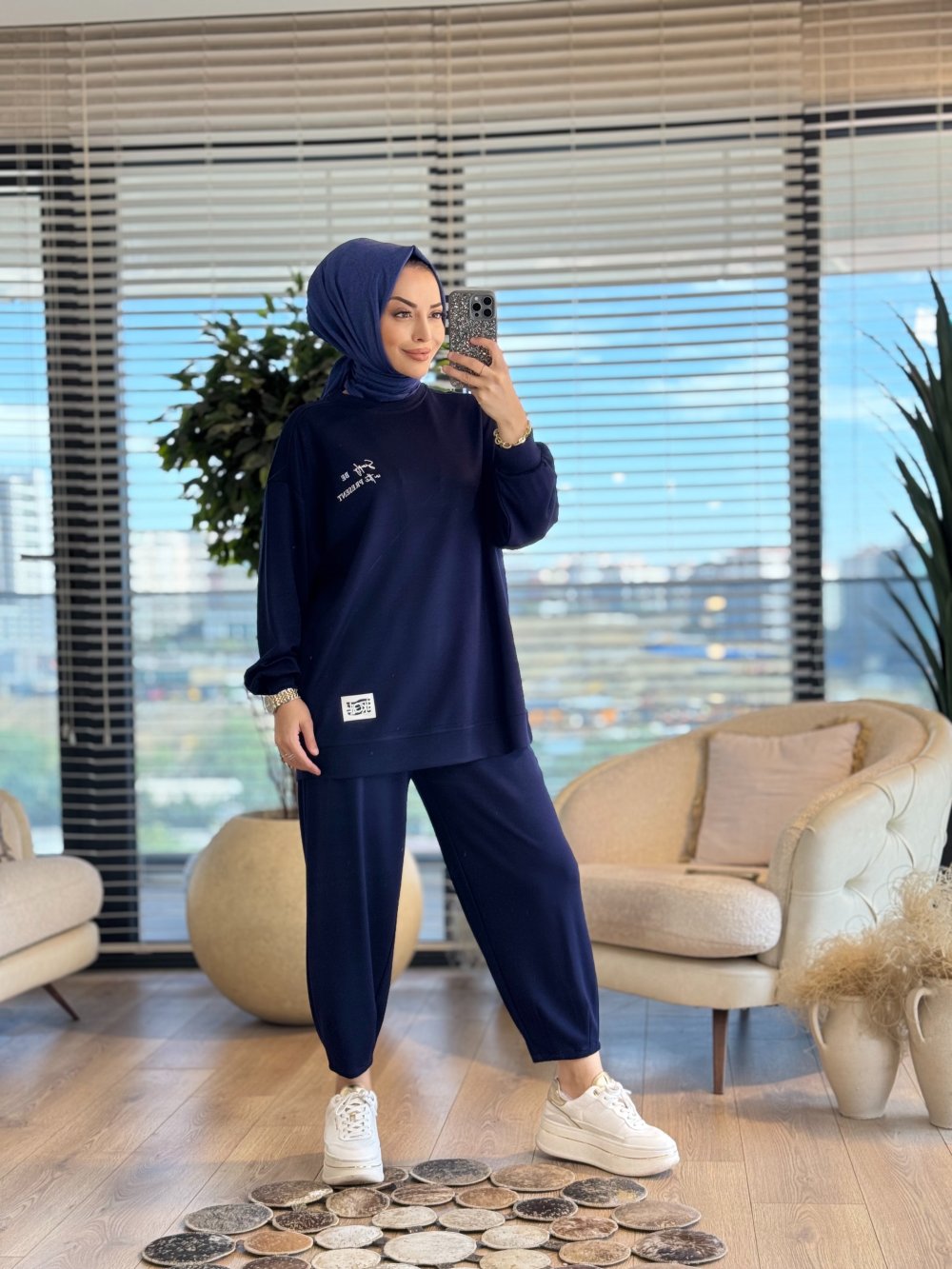 35097 Yüksek Baskı Ve Etiket Detaylı Takım Lacivert