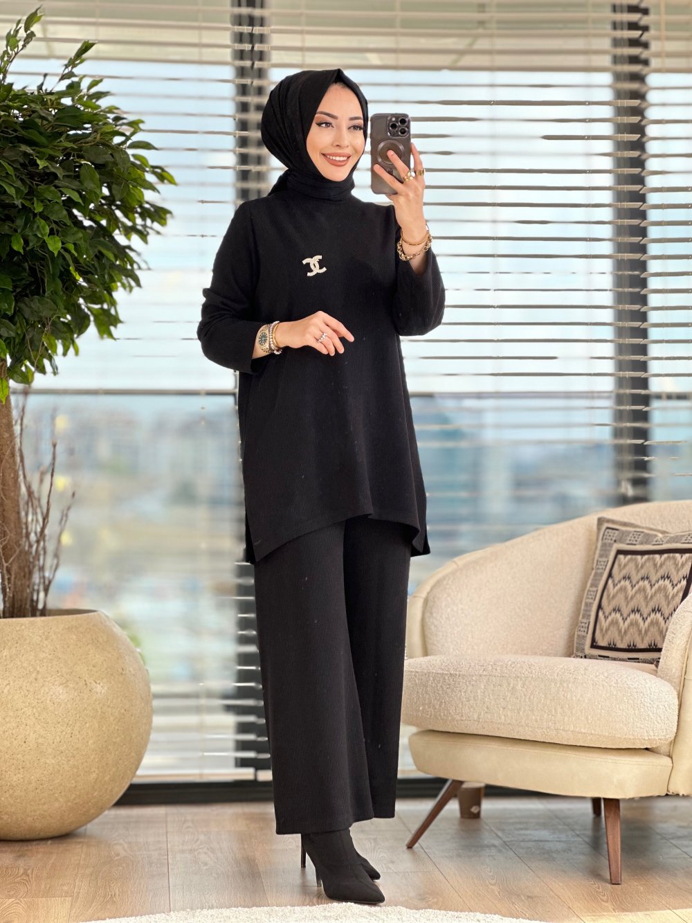 3664 Manolya Takım Siyah
