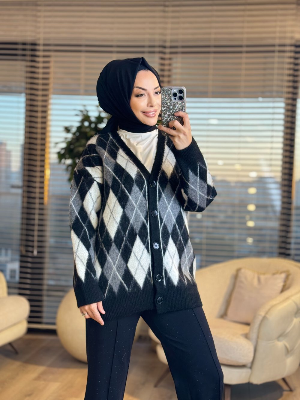 3948 Baklava Desenli Hırka Siyah