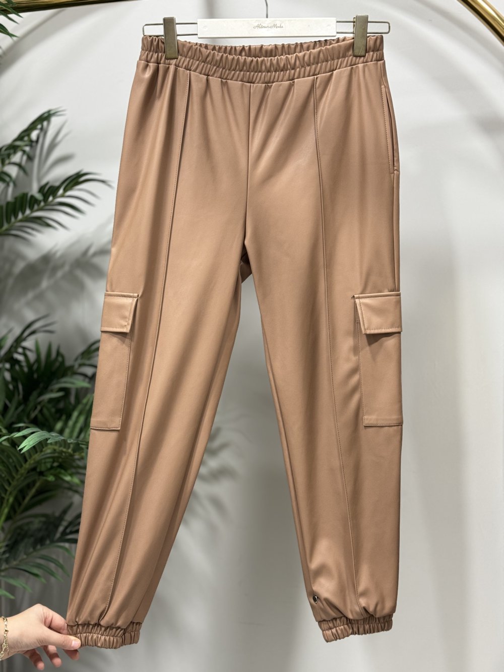 3951 Yandan Cepli Deri Pantolon Latte