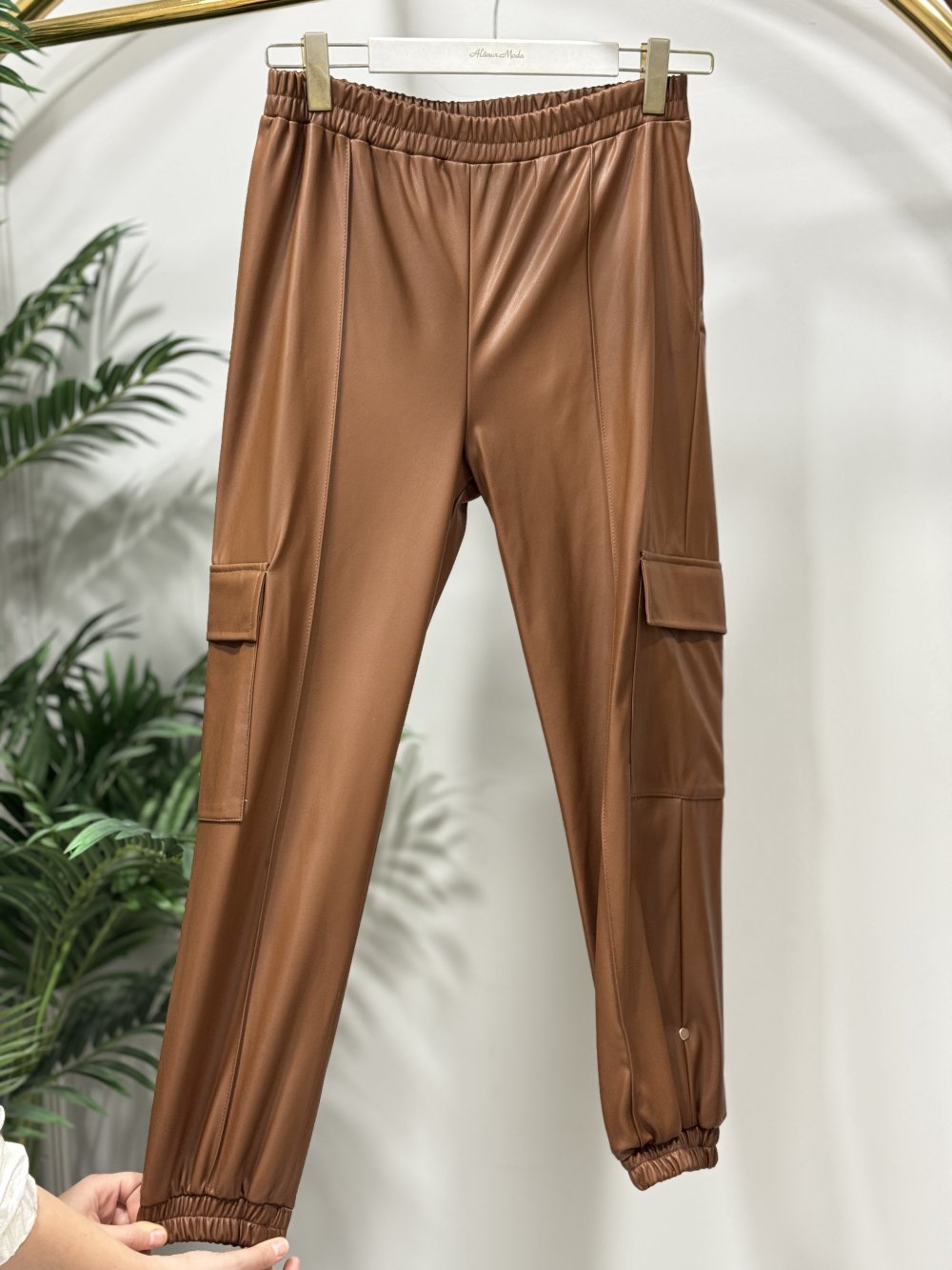 3951 Yandan Cepli Deri Pantolon Taba