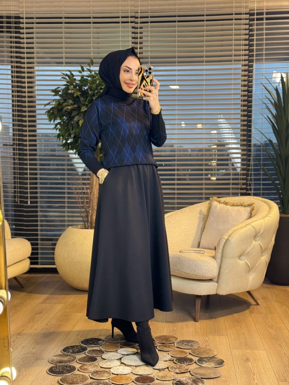44251 Sim Baklava Desen Triko Kazak Siyah