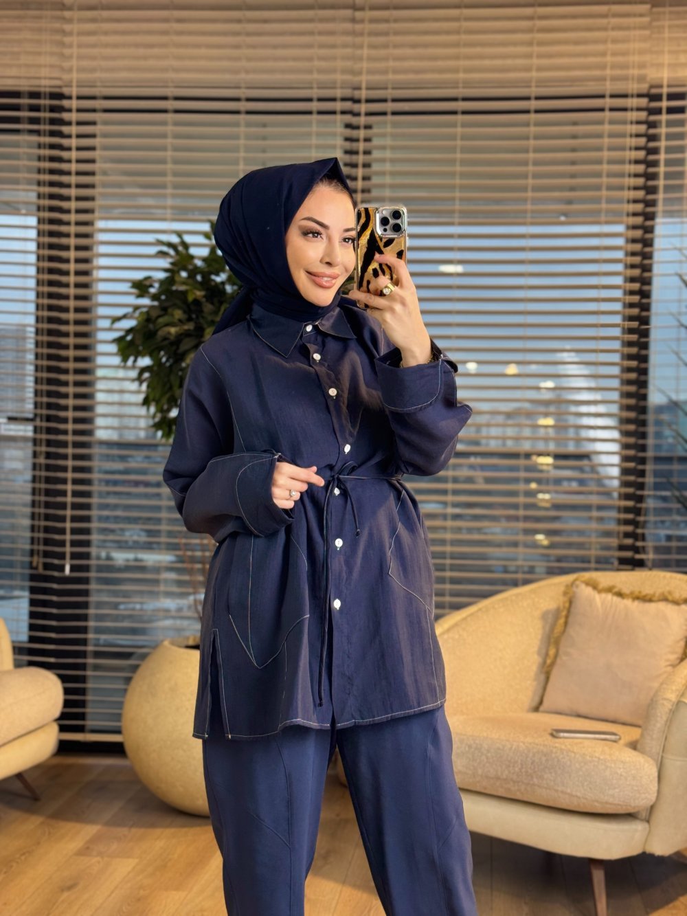 4468 Cepli Kolu Katlamalı Gömlek Lacivert
