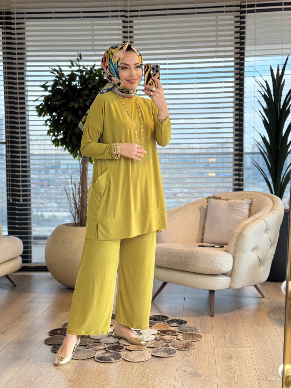5015 Yanları Cepli Sandy Takım Yağ Yeşili