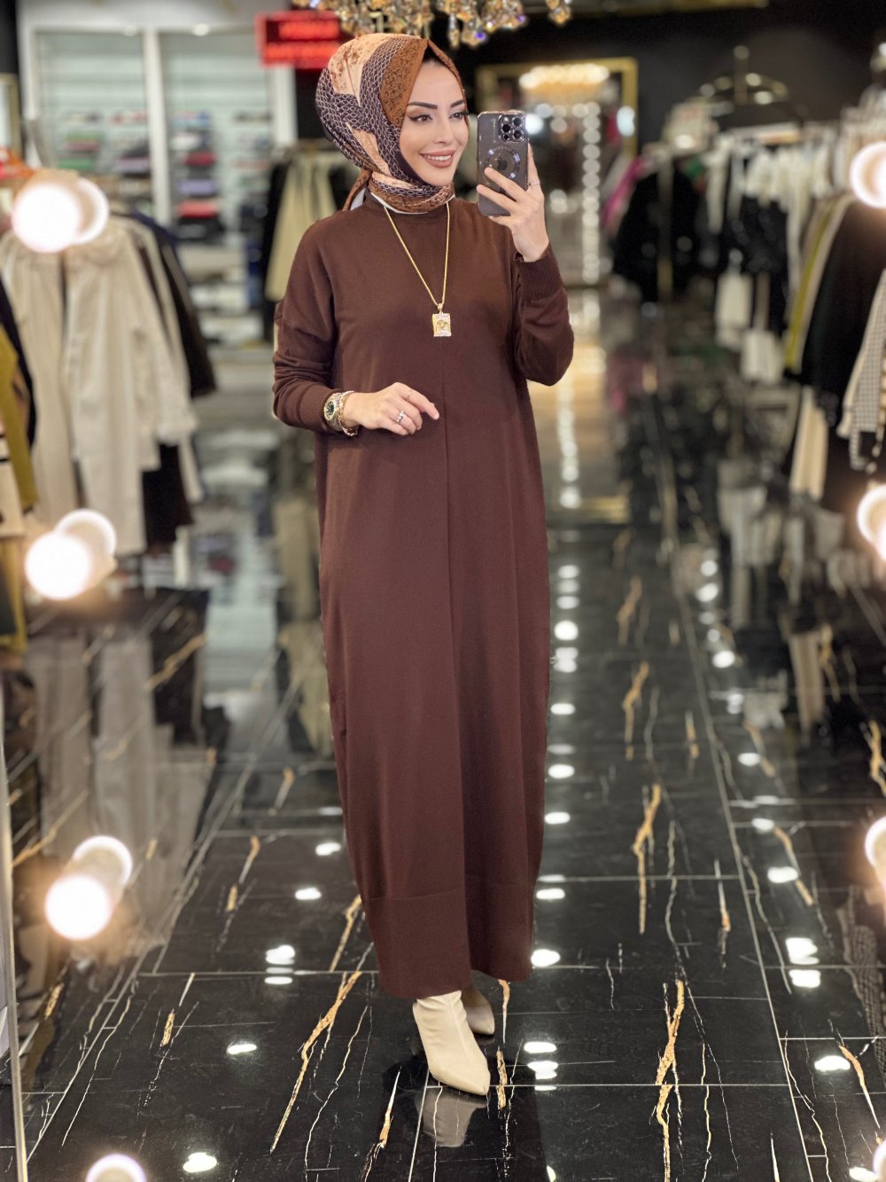 7017 Öpücük Yaka Vanezia Triko Elbise Kahve