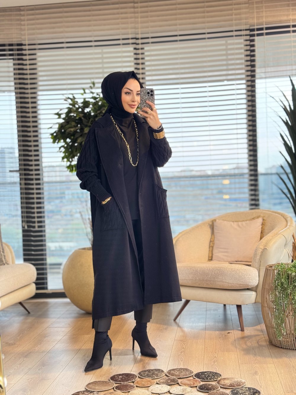 7201 Altı Düğmeli Trikolu İki İplik Kaban Siyah