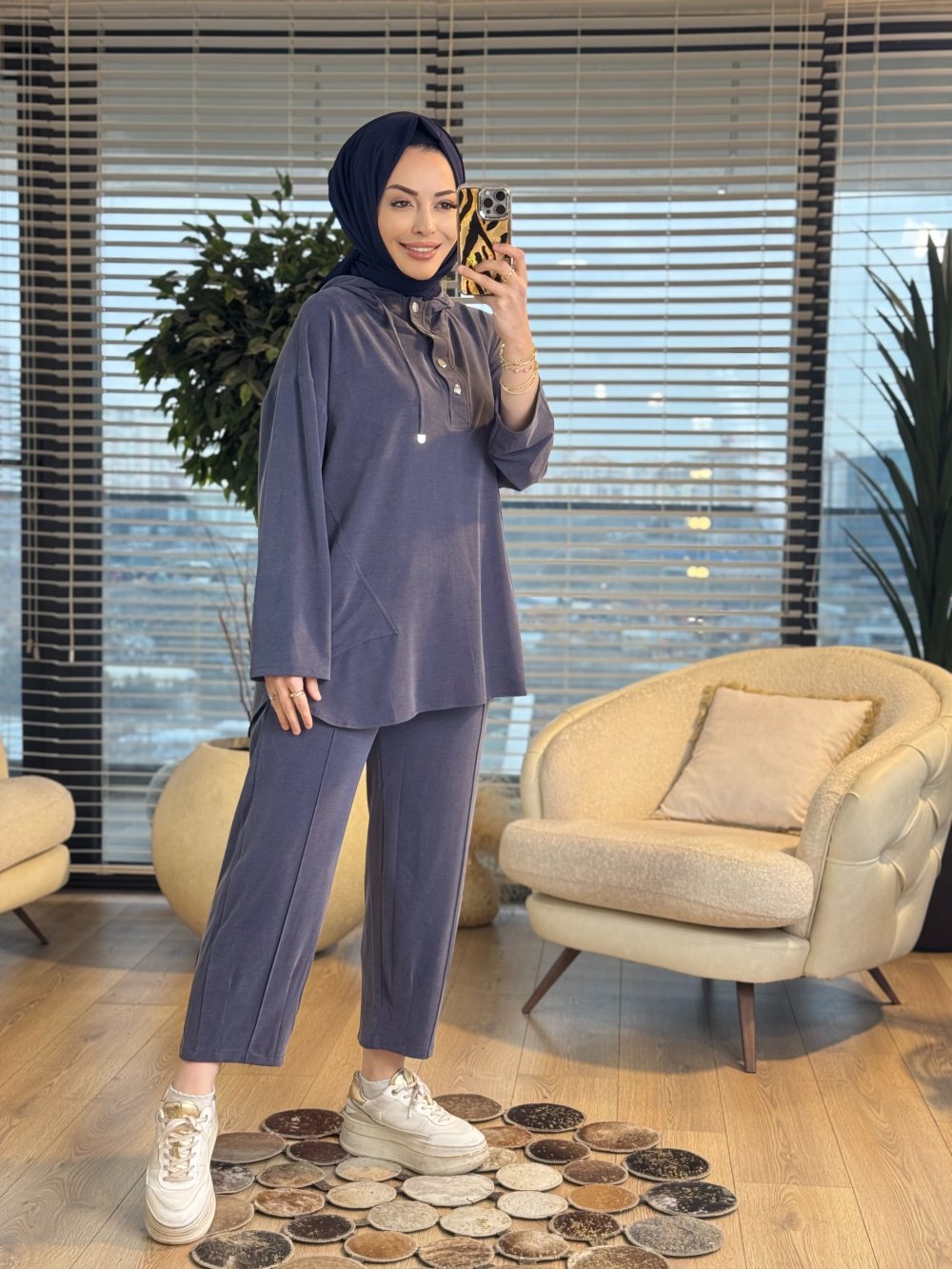 7416 Oysho Kapşonlu Patı Çıtçıtlı Takım Lacivert