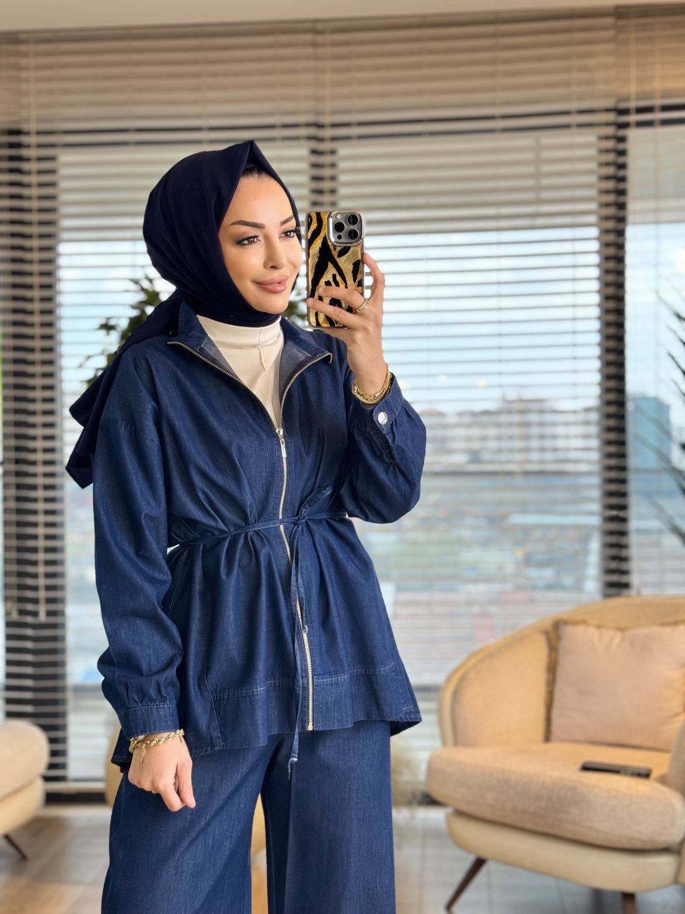 7428 Tencel Önden Fermuarlı Takım Mavi