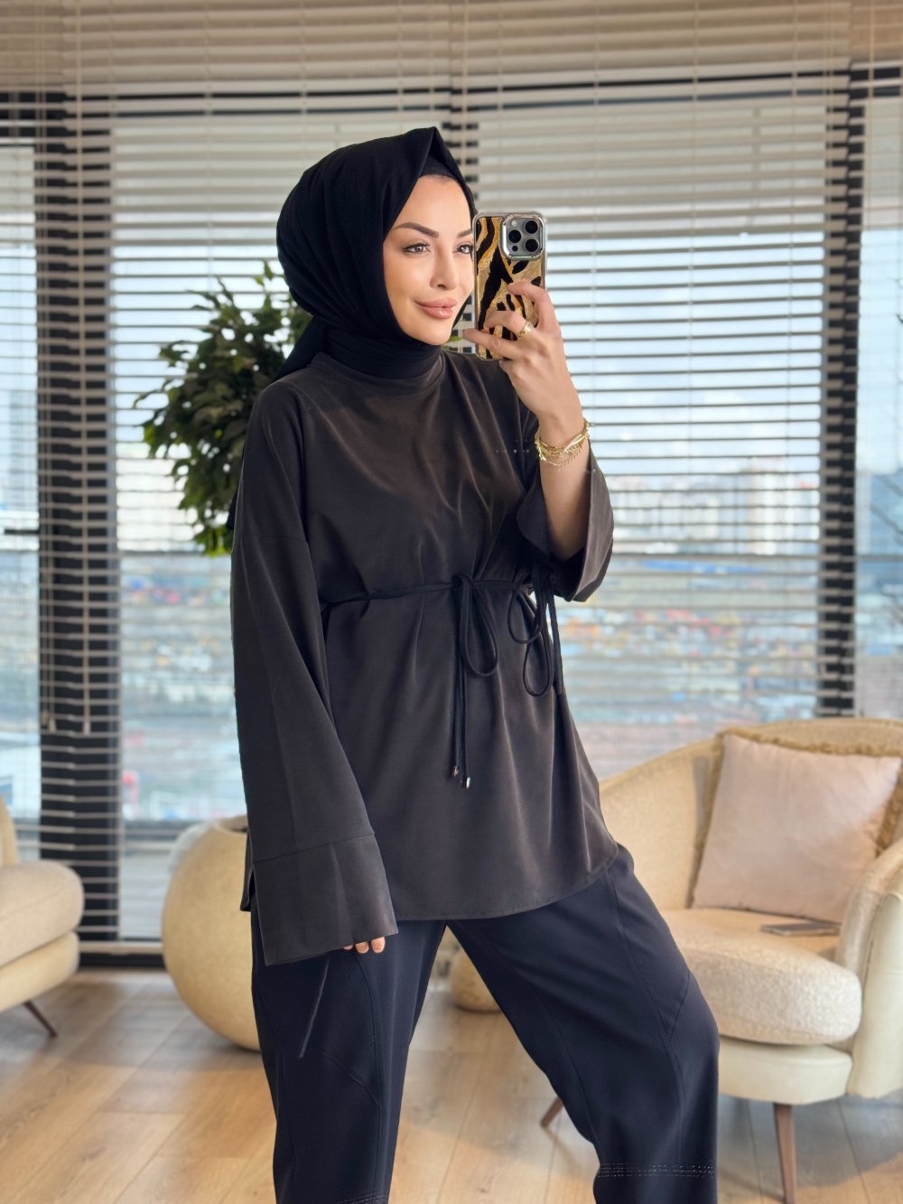 7465 Oysho Kolları Bağcıklı Tunik Siyah