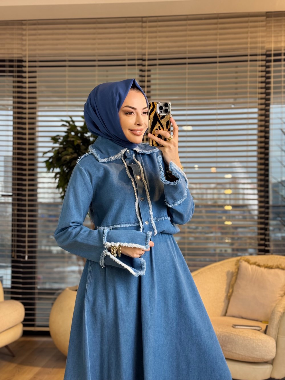 7475 Tencel Saçak Detaylı Etekli Takım Mavi