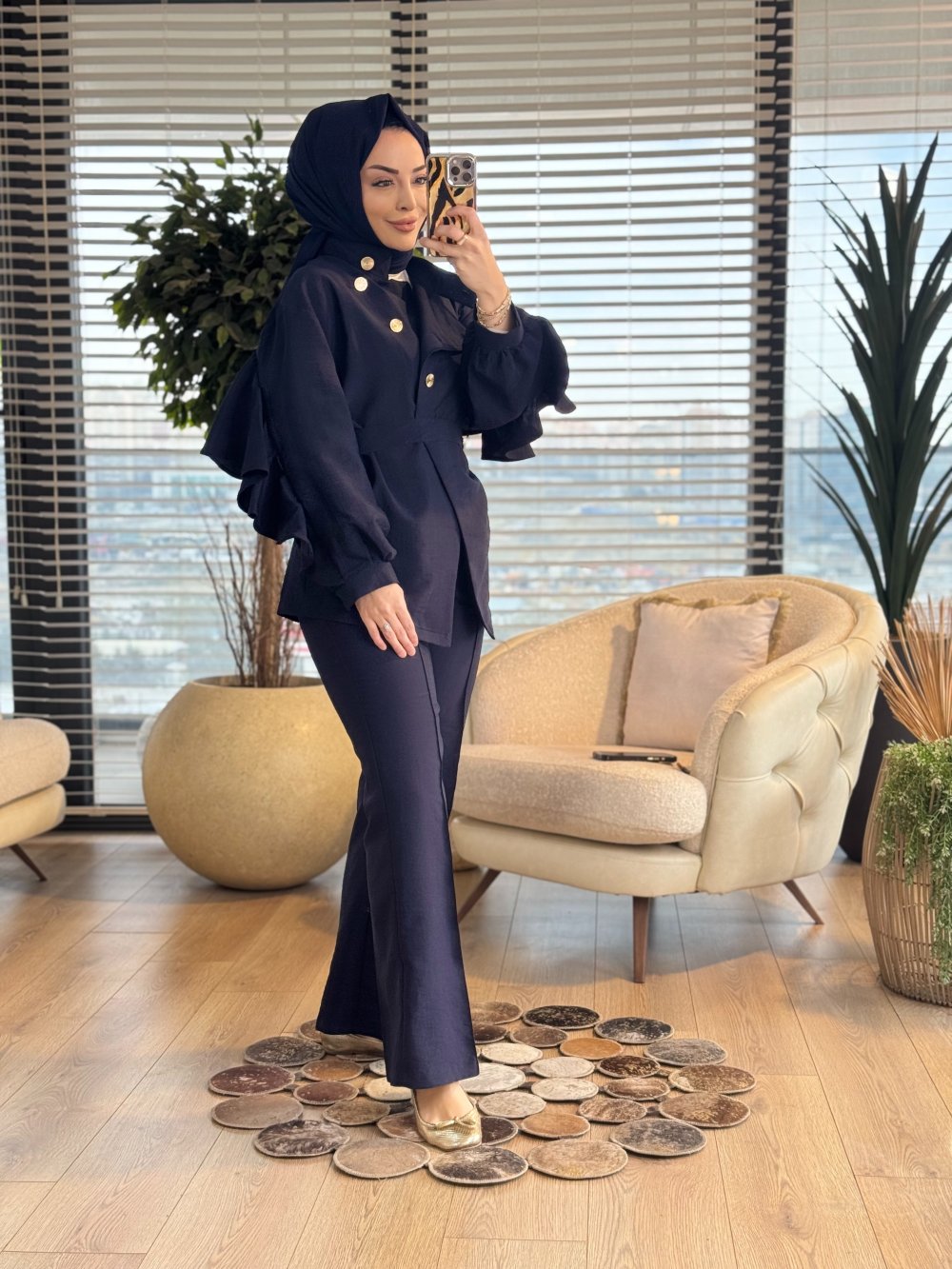 824 Ön Üçgen Parça Gold Düğmeli Takım Lacivert