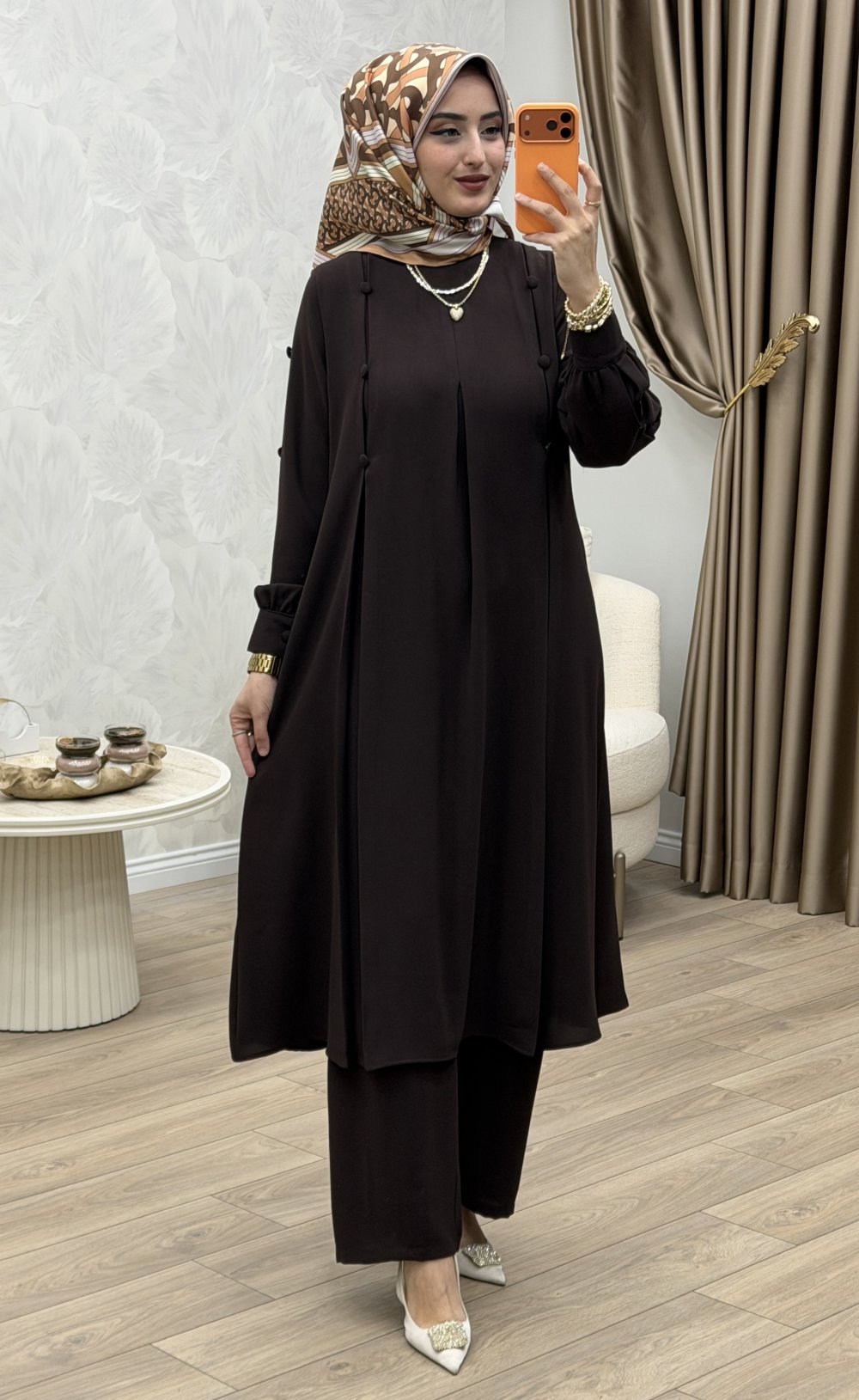 Ahsen Takım,hem iş hem de günlük hayatınızda rahatlıkla tercih edebileceğiniz çok yönlü bir parçadır. Şıklığı konforla buluşturan bu tasarım, sezonun en gözde modellerinden biri olacak