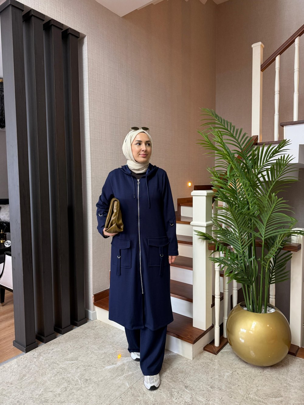 Kap boy 105 cm’dir. Önünde metal dişli fermuarı, yanlarda cepleri bulunmaktadır. Kapüşonludur.