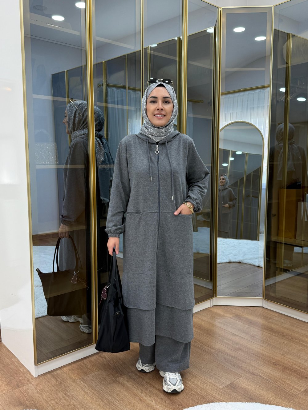 Aller Detaylı Kapüşonlu İkili Takım Antrasit