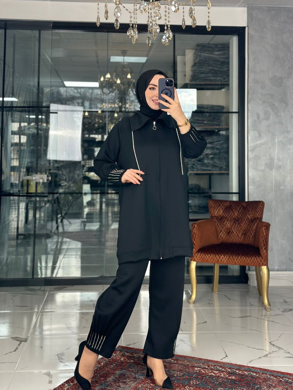 kol agzı ve paça uçları taşlı