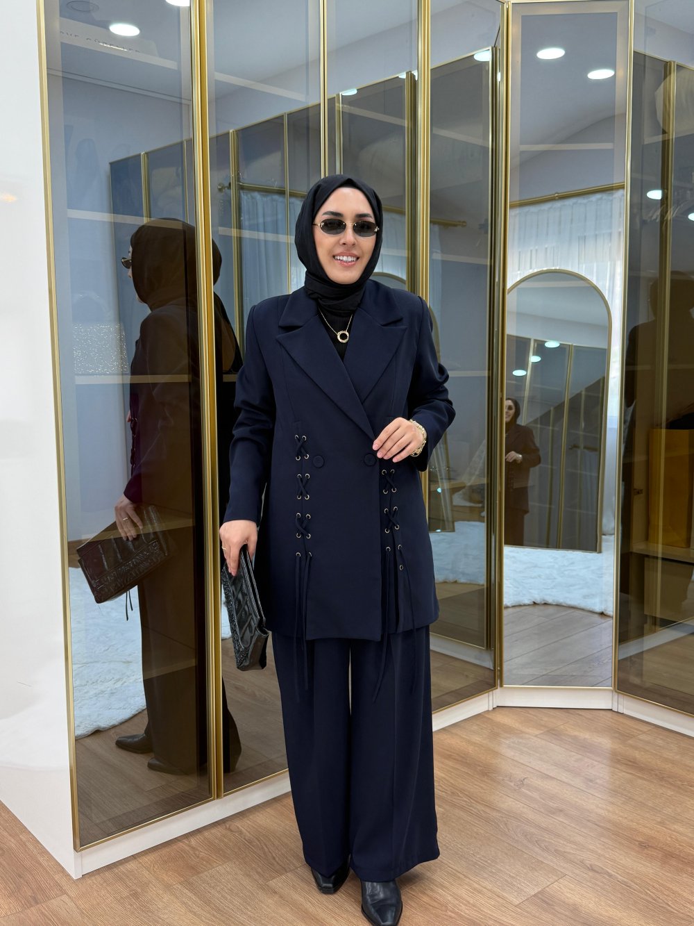 Pantolonun arka kısmı lastiklidir. Ön kısmı fermuar ve düğme detaylıdır.