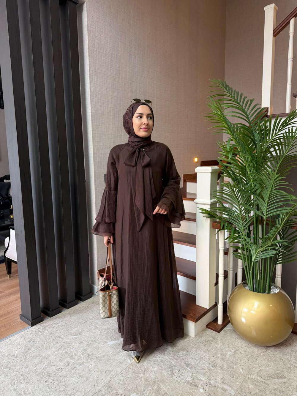 Bağlama Detay Tensel Elbise Kahverengi