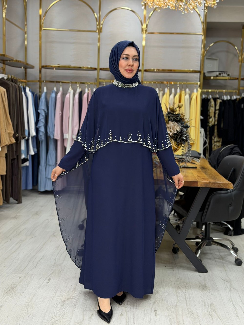 Kumaşı kreptir. Üzerindeki şifon çıkarılabilir. Taşları çakmadır.