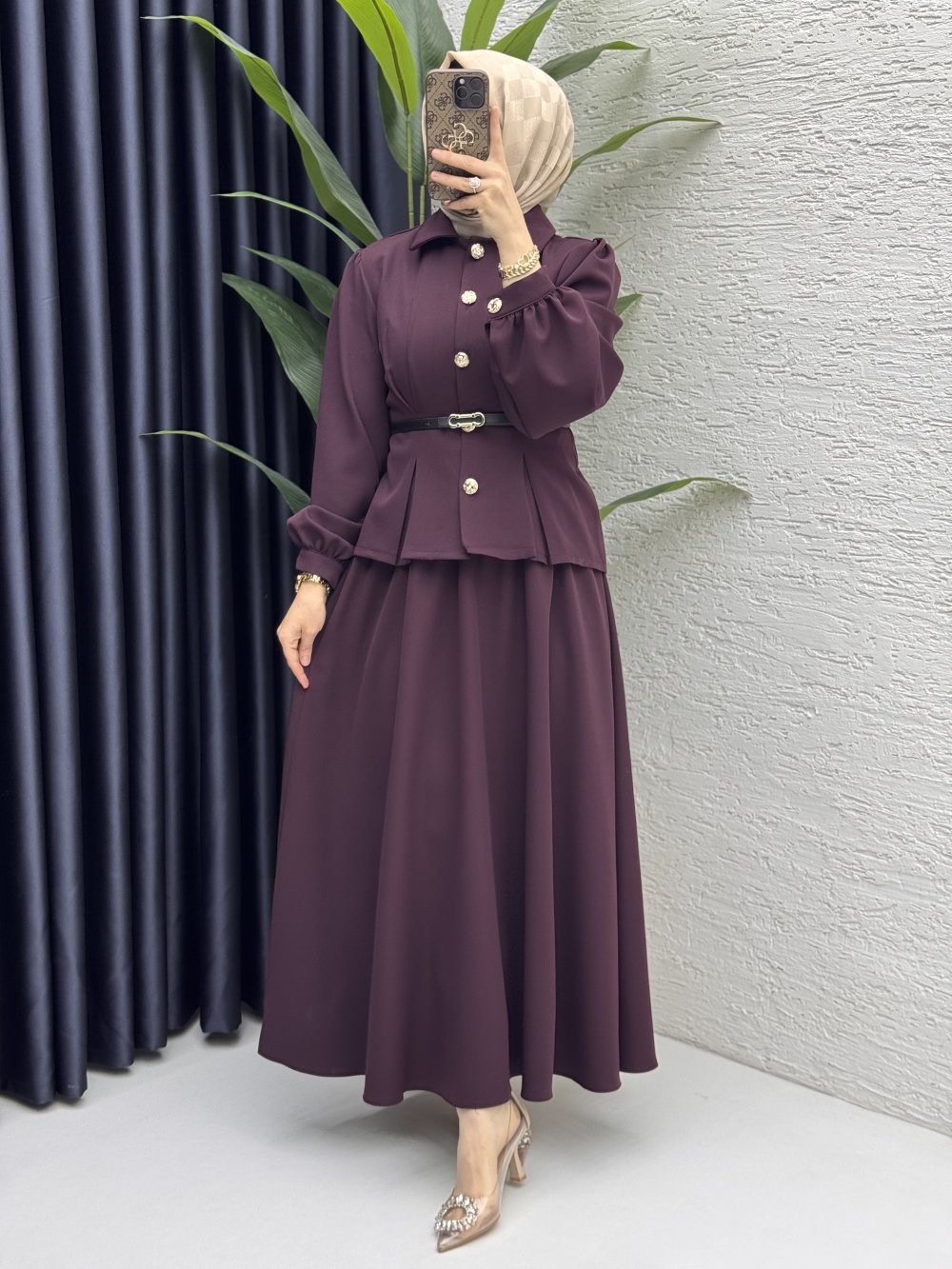 Bihter Etekli Takım Tesettür Giyim Mürdüm