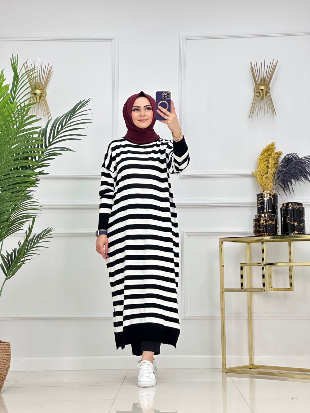 CANSEL ÇİZGİLİ TRİKO TUNİK-SİYAH