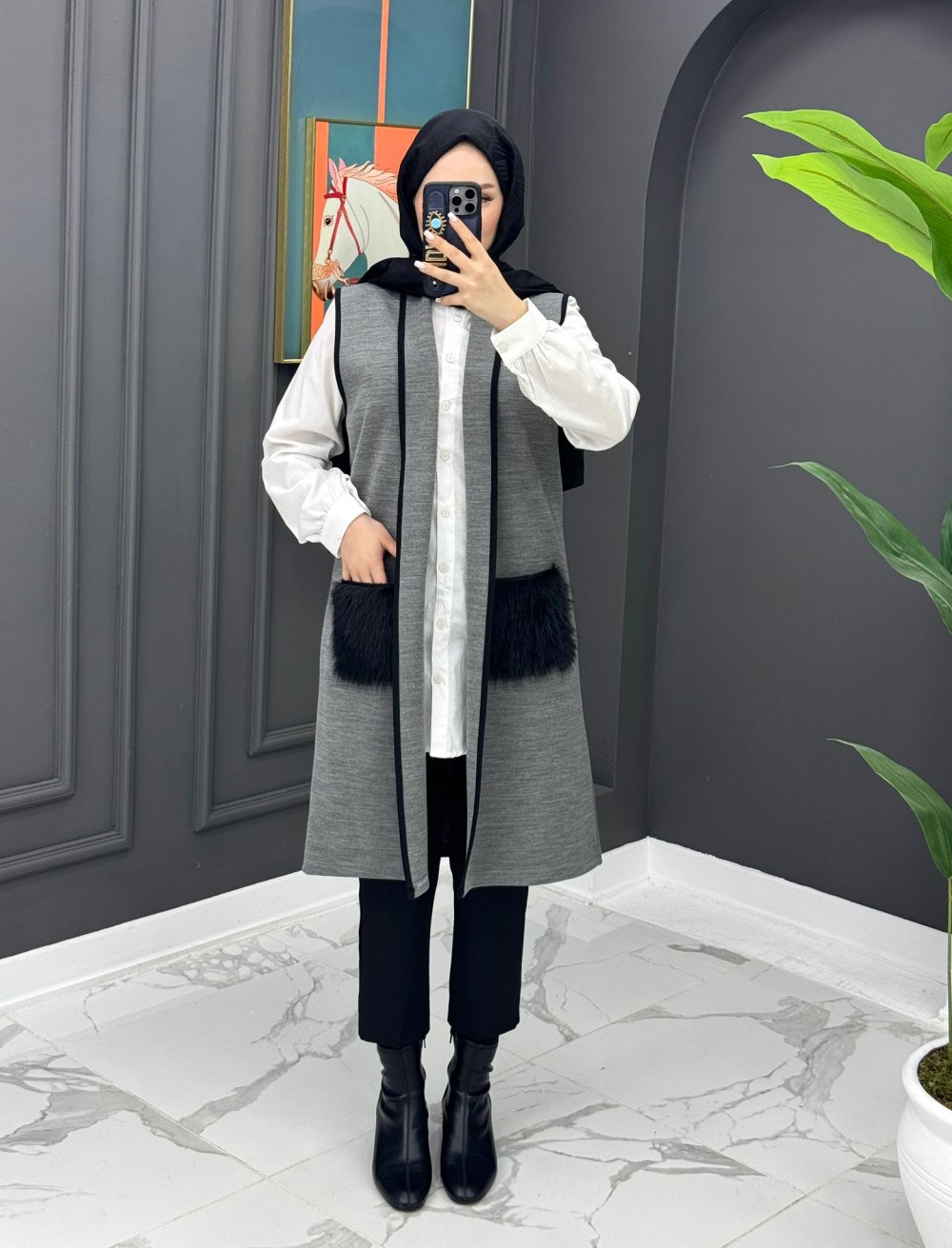 Cebi Kürklü Yelek - Gri
