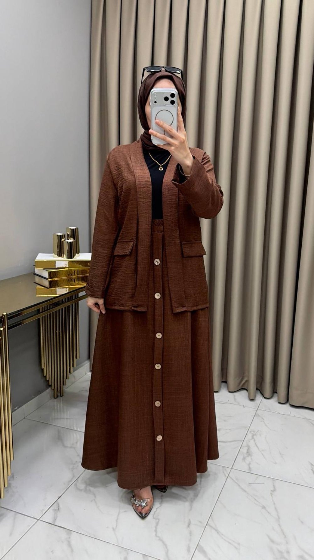 Ceketli Etekli Takım Kahve