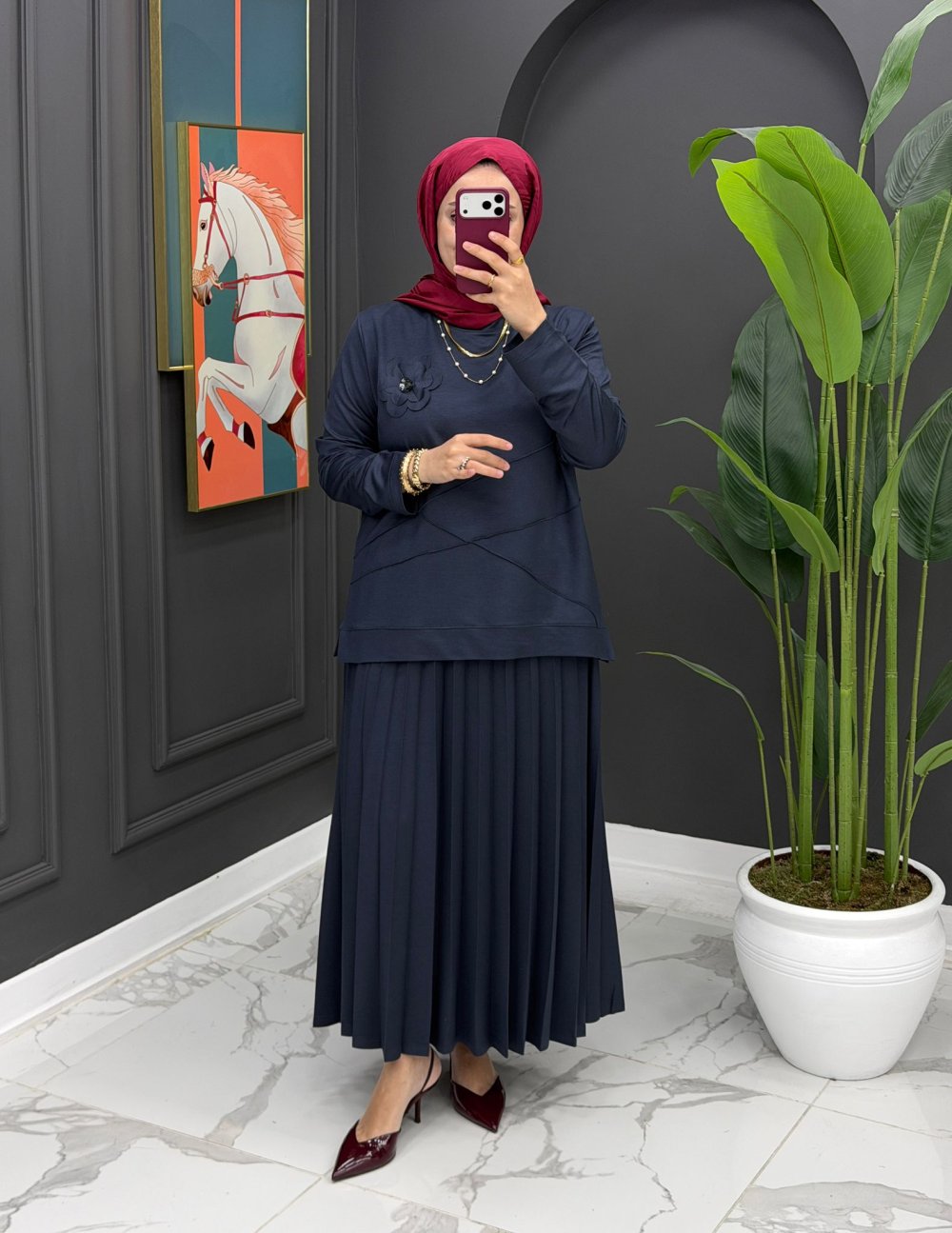 Çiçek detaylı etekli takım