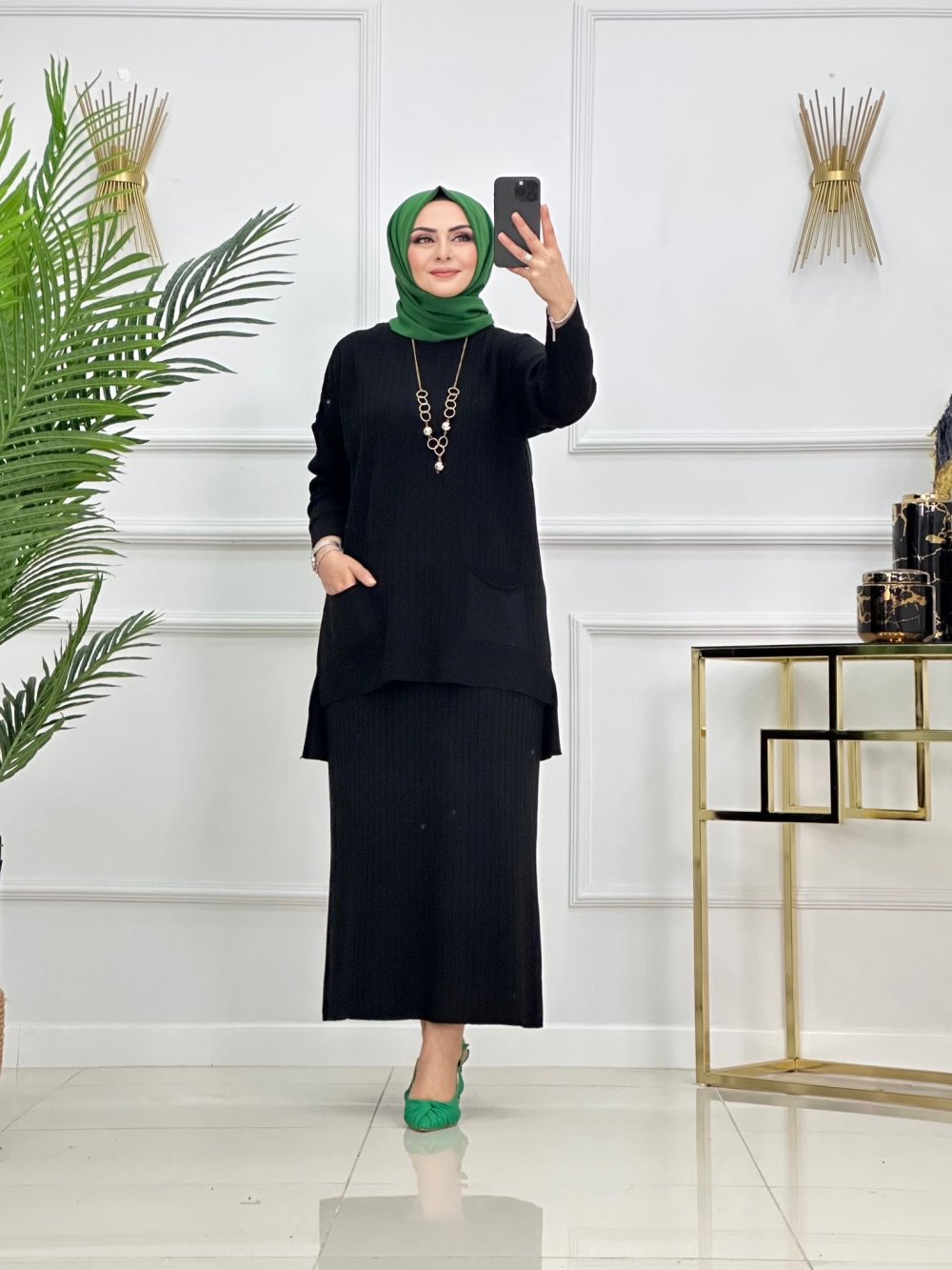 DEMET ETEKLİ TRİKO TAKIM-SİYAH